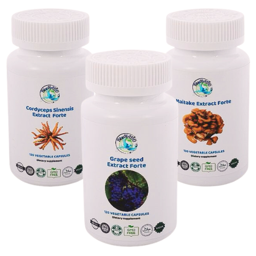 Sănătatea Cardiovasculară – Extract Forte din Maitake, Cordyceps și Semințe de Struguri pentru Reducerea Colesterolului și Reglarea Tensiunii